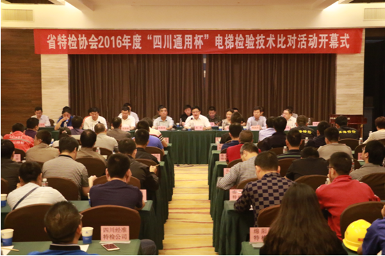 9月21日至23日,由四川省特种设备检验检测协会(以下简称省特检协会)主办,南充市特种设备监督检验所、四川通用电梯有限公司协办的2016年度“四川通用杯”电梯检验技术比对活动在阆中圆满举行。来自全省20余个地市州以及天津、青海、贵州的电梯检验同行和电梯领域专家齐聚一堂,共同探讨电梯检验技术的发展趋势,研究最新的电梯检验设备,切磋检验技艺,提升检验能力。省特检协会理事长韩儒理,省特检协会常务副理事长、四川省特检院院长蒋青,重庆市特检院技术顾问、省特检协会首席高级技术顾问孙立新,天津市滨海新区市场监管局副局长顾国洪、贵州省特检院院长邹建华、青海省特种设备检验所所长李生刚、南充市质监局局长李泽林、四川省特检院副院长熊荣、杜艳雄、黄坚,成都市特检院副院长赵丁,四川省特检院党委委员孙宇艺、省特检协会秘书长邱荣先、副秘书长王光明等出席活动。
