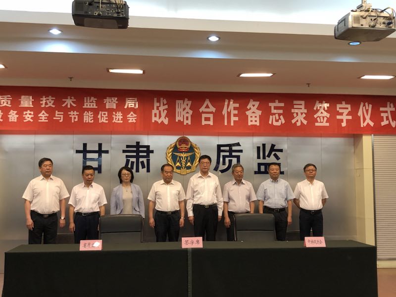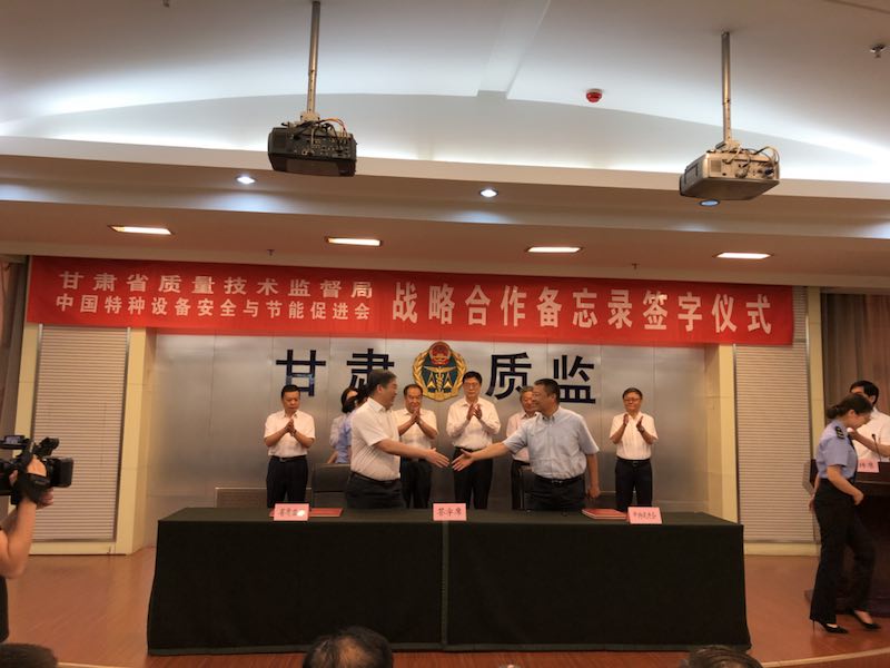 2018年5月30日上午,中国特种设备安全与节能促进会与甘肃省质量技术监督局在兰州市举行战略合作备忘录签署仪式。原国务院参事、中特促进会会长张纲、中特促进会副会长张延丰、中特促进会秘书长王晓雷、副秘书长王为国,甘肃省质量技术监督局党组书记、局长王忠习、党组成员、副局长周莹、张矛、孙乔玉出席签署仪式。甘肃省质量技术监督局总工程师严勇主持签署仪式。此次战略合作是双方深入贯彻党的十九大精神, 全面落实党中央、国务院《关于开展质量提升的指导意见》和国家市场监管总局特种设备安全监管改革顶层设计方案,凝心聚力推进质量提升行动,服务国家“一带一路”战略的重要步骤,是促进甘肃社会经济和特种设备质监事业高质量发展,充分发挥促进会“服务会员、服务政府、服务行业”职能的重大举措,是我们双方寻求变革、致力双赢的一次重要合作。甘肃省质监局作为全国首家与中特促进会签署战略合作备忘录省级质监局,双方将于近期在特种设备监督抽查、人员培训、能力建设和促进行业质量提升方面开展相关合作,并通过长期合作,力争在今后一个时期内,推动双方在特种设备监督检查、检验检测、质量提升、信息化、人才队伍、科技研发、应急处置、重大活动保障能力建设等方面的全方位深度交流与合作。